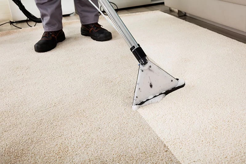 タンク付きポリッシャーまたはバフマシンにカーペット用洗剤を入れ、専用ブラシで泡立てながら洗浄します。洗浄後の泡や汚水はエクストラクター(汚水回収機)で回収し、清水噴霧と汚水回収を繰り返したのち、リンス中和剤で仕上げ、最後にバキュームします。